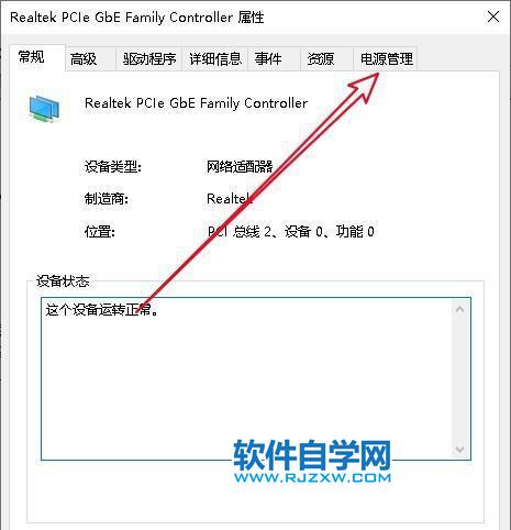 5、接下来在打开的网卡驱动属性窗口中点击“电源管理”的选项卡。