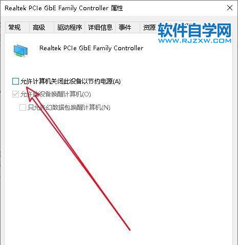 6、在打开的电源管理的窗口中找到“允许计算机关闭此设备以节约电源”的设置项。