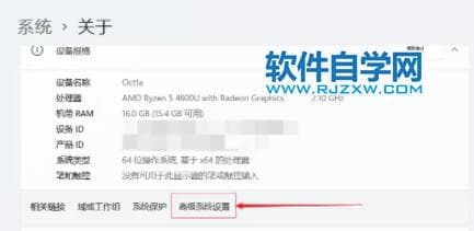 第3步、然后在关于中找到相关链接中的“高级系统设置”。