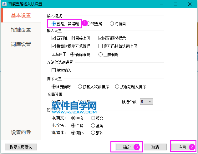 百度五笔输入法怎么设置五笔拼音混输 日期:2026-01-03 08:49:49 栏目:系统教程 浏览:16 评论:0 百度五笔输入法设置五笔拼音混输的方法: 1、点击百度五笔输入法的设置。 2、弹出百度五笔输入法设置对话框,勾选五笔拼音混输。点击应用,再点击确定。即可。 上一篇:Win11切换不出来输入法怎么回事 下一篇:Win11怎么添加输入法的方法 相关推荐 笔记本怎么进入Bios 笔记本重装系统后搜索不到无线信号怎么办 硬盘损坏数据恢复的注意事项 安装ActiveX控件出现复制错误怎么解决 评论留言 我要留言 ◎欢迎参与讨论,请在这里发表您的看法、交流您的观点。 昵称:* 邮箱:* 网址: 内容: 取消回复