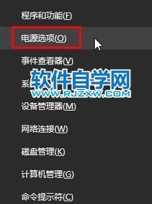 3、在开始菜单单击右键,选择“电源选项”。
