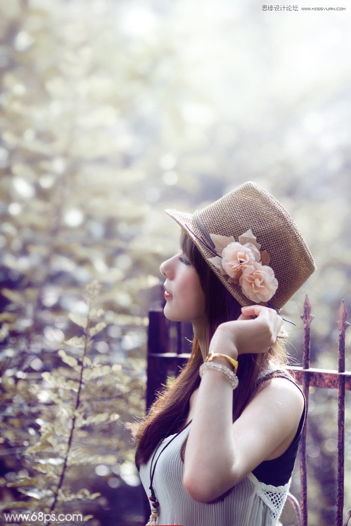 素材主色为黄绿色,的时候先把主色转为橙黄色,然后直接降低主色饱和度得到初步的中性色;后期给图片暗部增加一些蓝色,局部再渲染一些高光即可。