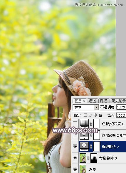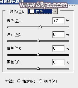 2、创建可选颜色调整图层,对黄、绿、白、中性色进行调整,参数设置如图2 - 5,效果如图6。这一步把背景主色转为橙黄色。