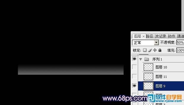 | 2、取消选区后把图层不透明度改为:50%,加上图层蒙版,用黑白线性渐变拉出顶部透明度效果如下图。 |