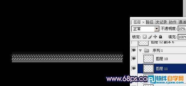 | 3、新建一个图层,用矩形选框工具拉出两条小的选区如图3,然后填充白色,确定后把图层不透明度改为:10%,效果如图4。 |