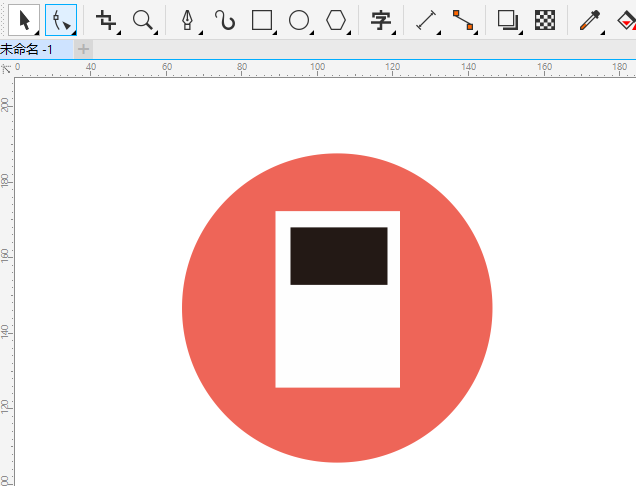 2、在圆形中,绘制一个白色矩形。如下图: