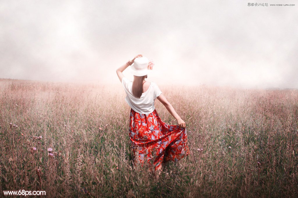 晨雾或雾化效果用云彩制作是非常快的。过程:先把转为自己喜欢的主色,适当再调暗一点;然后用云彩滤镜加上云彩,混合模式改为“滤色”,初步效果就出来了;后期把近景雾涂淡一点,再微调颜色即可,