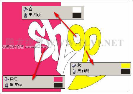 (4)下面分别为字母图形填充颜色,并参照图3-15所示分别调整字母的位置。