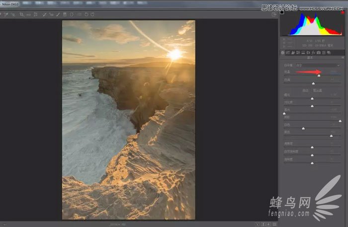四、提高色温,让照片整体更有落日余辉的氛围。