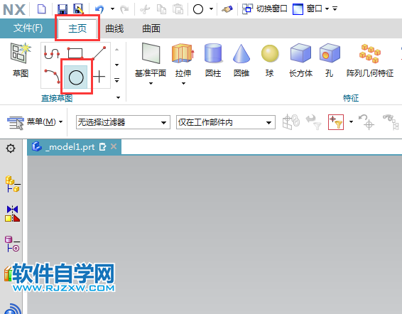 1、打开UGNX12.0软件,点击主页的圆形工具。