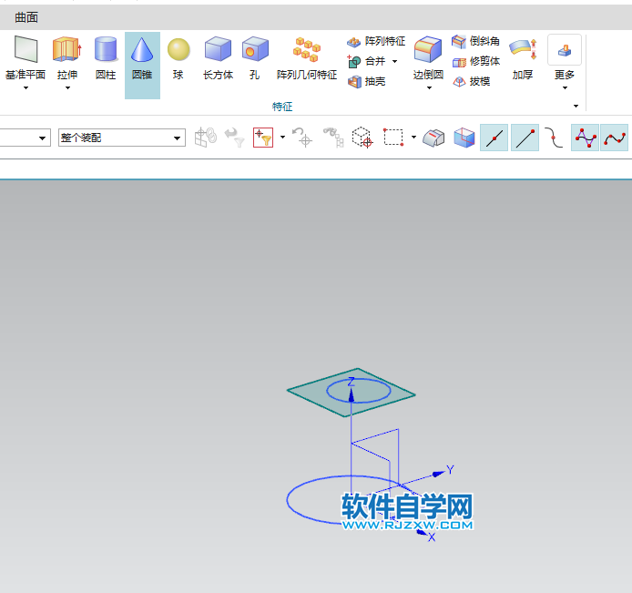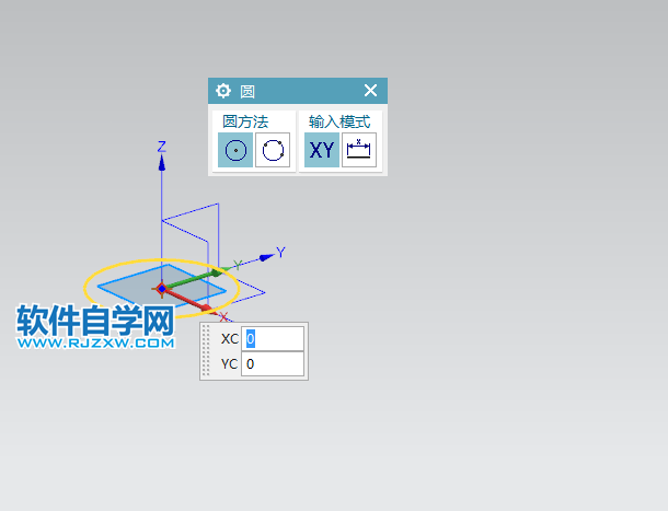 5、然后在新的基准面,绘制一个圆形出来,效果如下: