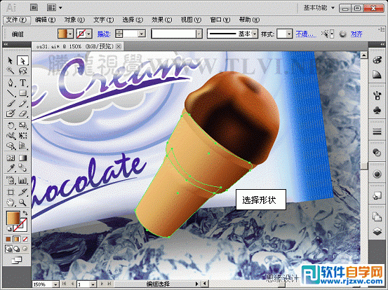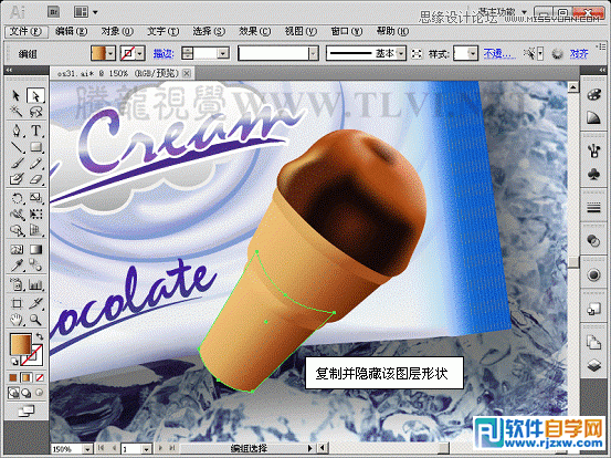 (2)选择蛋筒下部分形状,将其复制并隐藏。