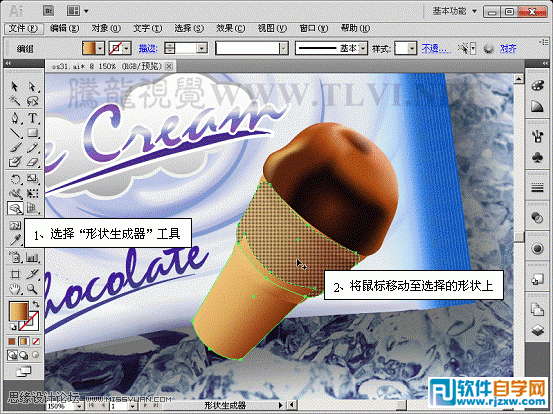 (3)选择要连接的形状图形,使用“形状生成器”工具将其连接合并。