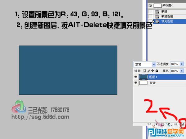 | 2、新建一个图层,填充颜色:#2B5D79,如下图。 |