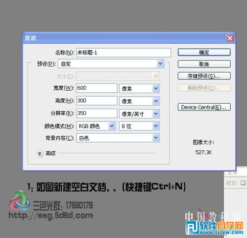 | 1、新建一个600 * 300像素,分辨率为350像素的文档,如下图。 |