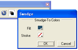 现在该设置发光色,首先给复合路径对象填上一种绿色。接着双击 Xtra Tools 面板的 Smudge tool ,在对话面板的填充色一栏,我将页面背景色拖入其中,保持笔划颜色为空,点击 OK 。