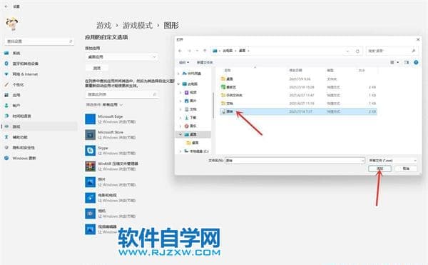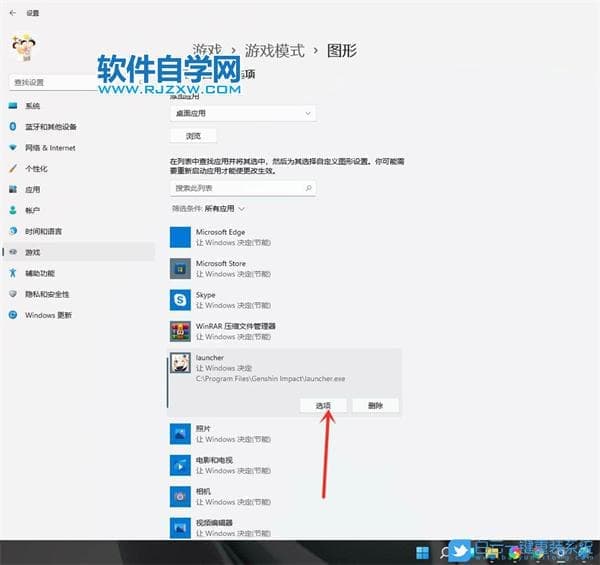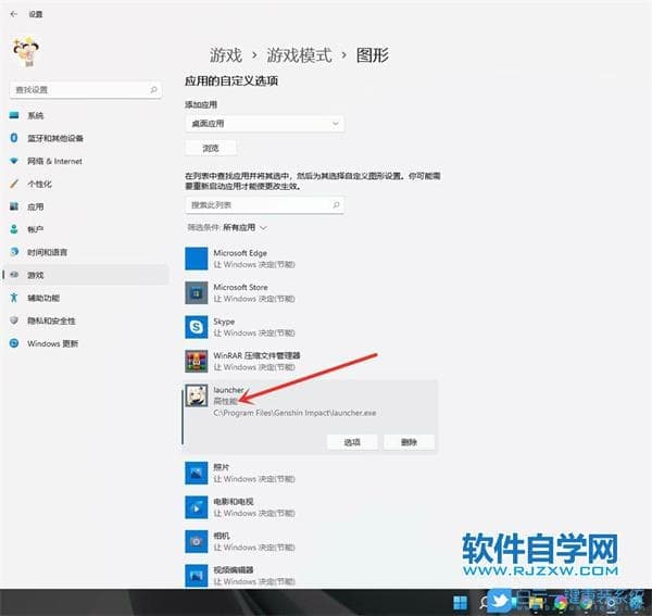 4、游戏 - 游戏模式 - 图形,点击应用的自定义选项下的浏览。