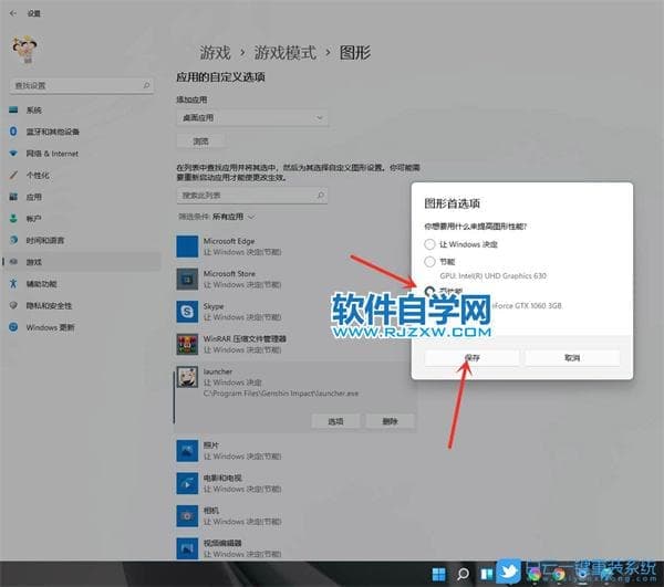 7、图形首选项,你想要用什么来提高图形性能?选择高性能,然后点击保存。