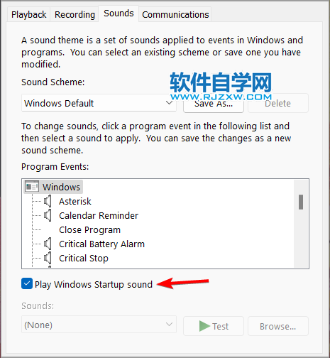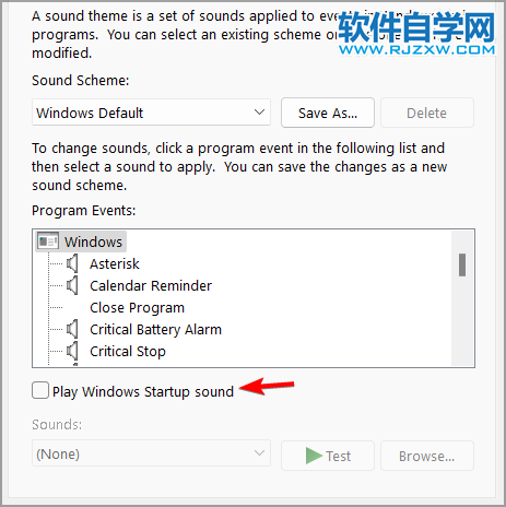 5、进行这些更改后,您现在已经显示了更改窗口登录声音的选项。要更改启动声音,您只需执行以下操作: