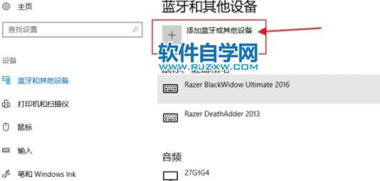 第4步、进入到蓝牙设置的页面,我们在右侧选择“添加蓝牙或其它设备”。