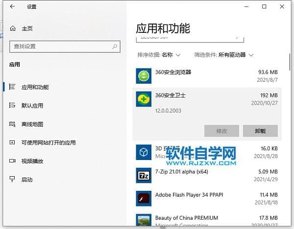 第5步、另外如果电脑上有安装360卫士、腾讯管家之类的管理软件的话,也可以直接通过这些软件的软件管理功能对应用程序进行卸载,这里就不多加赘述了。