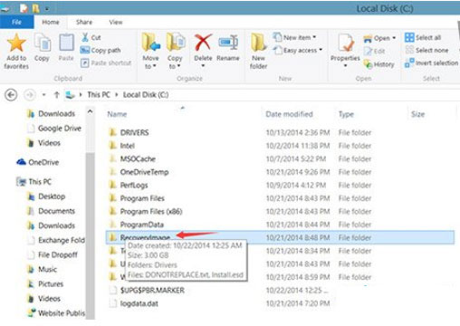 3、原来这个文件是存放系统恢复镜像的,通过了解它的作用之后,其实这个文件是可以删的,但又介于它强大的功能作用,能够帮助用户快速进行初始化,避免了重装系统的麻烦,还是建议用户保留下来。