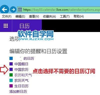 第2步、在选项界面,点击选择自己希望取消的订阅日历的名称。