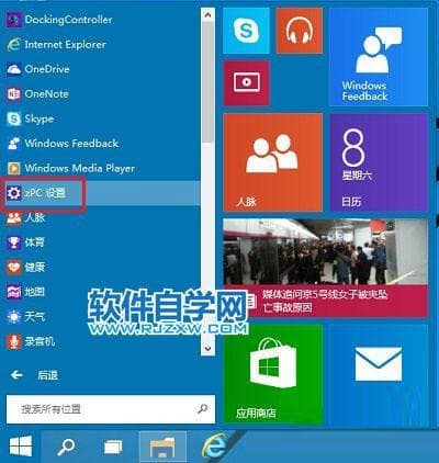 第1步、点开开始菜单,点击里面的电脑设置,没有的话,点击所有应用,找到并点击电脑设置(zPC 设置)。