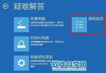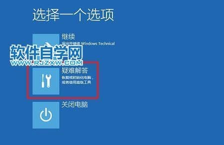 第4步、电脑重启后,在选择一个选项界面,点击疑难解答。