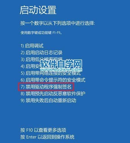 第8步、电脑会再次重启,重启后在启动设置界面,点击“禁用驱动程序强制签名”就可以了!