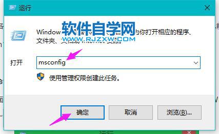 2、在输入框中输入“msconfig(不分大小写)”后,确定或者回车。