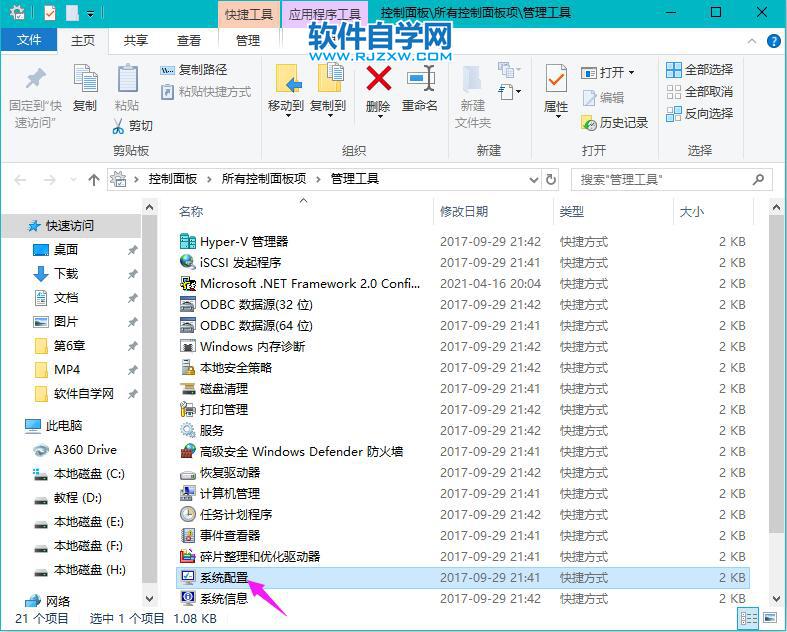 第3步、在“管理工具”界面,在右侧窗口中找到并双击“系统配置”就可以了!