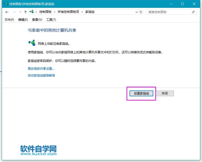 Win10电脑怎么创建家庭组 日期:2025-12-28 10:34:53 栏目:系统教程 浏览:3 评论:0 Win10电脑创建家庭组的方法: 1、点击开始菜单,点击控制面板。 2、点击家庭组。 3、点击创建家庭组。 4、点击下一步。 5、再点击下一步。 6、请记下此密码,点击完成。 上一篇:在Win10开始菜单中如何添加应用快捷方式 下一篇:Win10电脑如何禁止开始菜单显示最近打开的程序 相关推荐 禁用的服务怎么恢复 用虚拟机安装Win10的方法 Windows10桌面上如何创建宽带连图标 Win10电脑如何隐藏任务栏搜索和虚拟桌面按钮 评论留言 我要留言 ◎欢迎参与讨论,请在这里发表您的看法、交流您的观点。 昵称:* 邮箱:* 网址: 内容: 取消回复