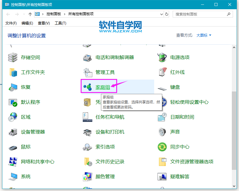 第2步、进入控制面板,点击家庭组。