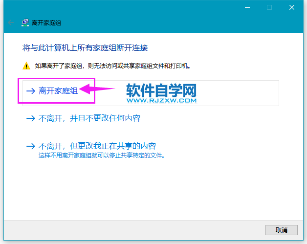 第4步、弹出离开家庭组,点击离开家庭组。
