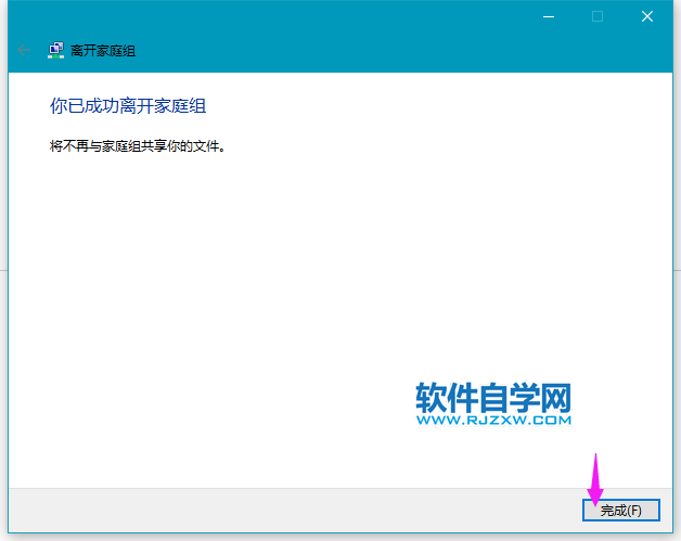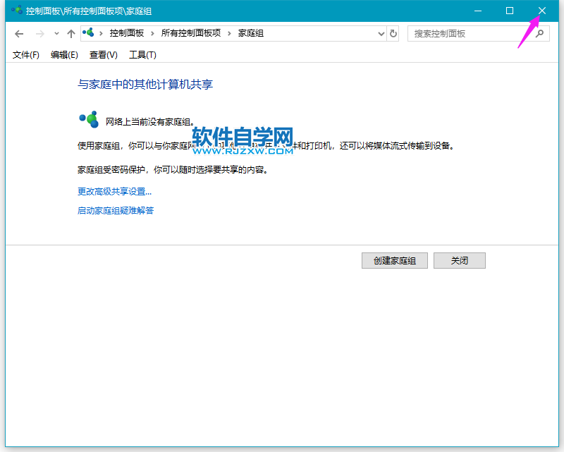 第6步、退出家庭组后,点击关闭。
