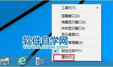 1、点击任务栏空白处,单击菜单中的“属性”。