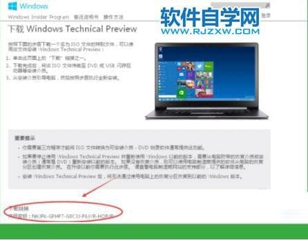 第6步、成为会员后,点击下载windows 10 预览版下载,就可以看到了win10密钥了。如下图所示。