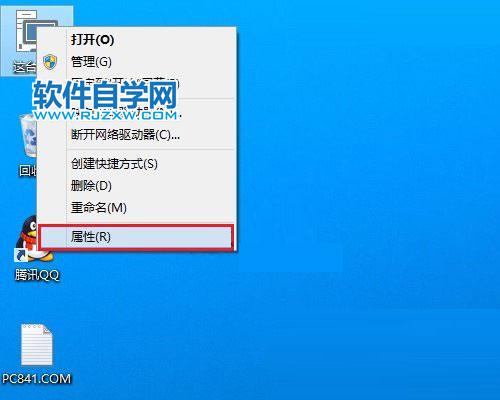 第1步:在Win10桌面的“这台电脑”图标上右键,然后选择【属性】,如下图所示。
