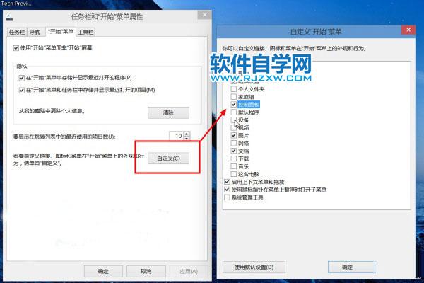 1、任务栏空白处右键属性开始菜单标签,