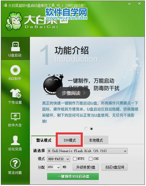 第2步、在U盘启动界面,选择ISO模式。