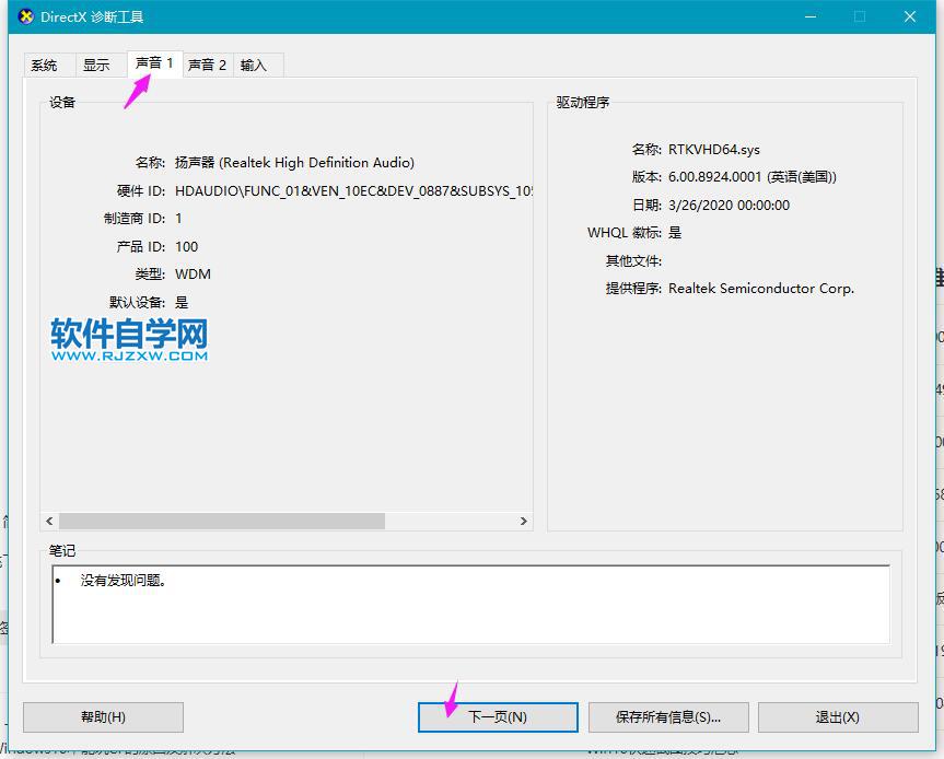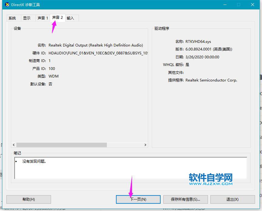 6、声音2没有发现问题,点击下一页。