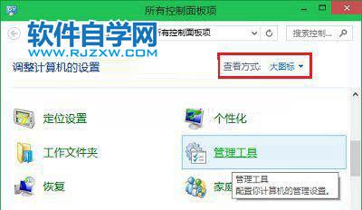 第2步、在控制面板界面,选择大图标查看方式(习惯之后您会发现非常方便),找到并点击“管理工具”。
