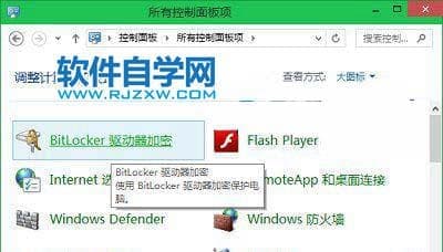 第2步、进入控制面板界面后,选择大图标查看方式,找到并点击“Bitlocker”。