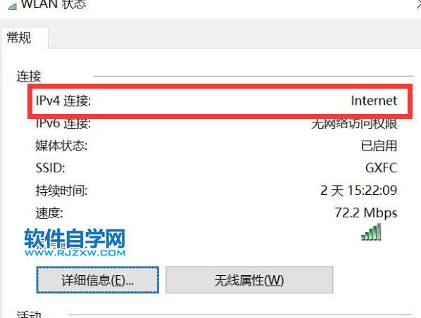 第9步、这时候【ipv4连接】的状态显示【internet】时,就说明网络可以使用了。