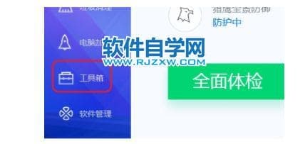 2、进入电脑管家后,我们点击打开左侧的“工具箱”。