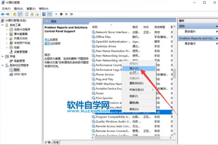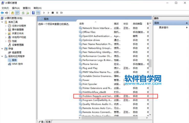2、在服务和应用程序下的服务找到Problem Repots and Solutions Control Panel Support。