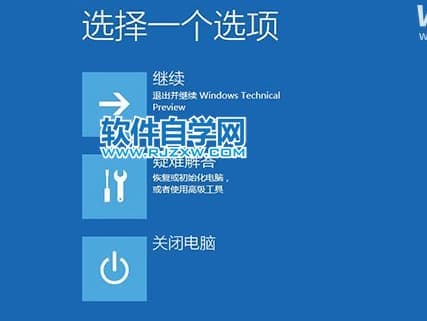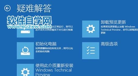 4、使用win10RE卸载让系统崩溃的更新。进入win10RE,然后选择“疑难解答”