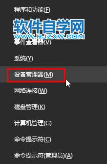 1、按下“Win+X”组合键,在弹出的菜单中选择“设备管理器”。