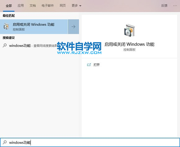 1、首先在开始菜单里输入「Windows 功能」